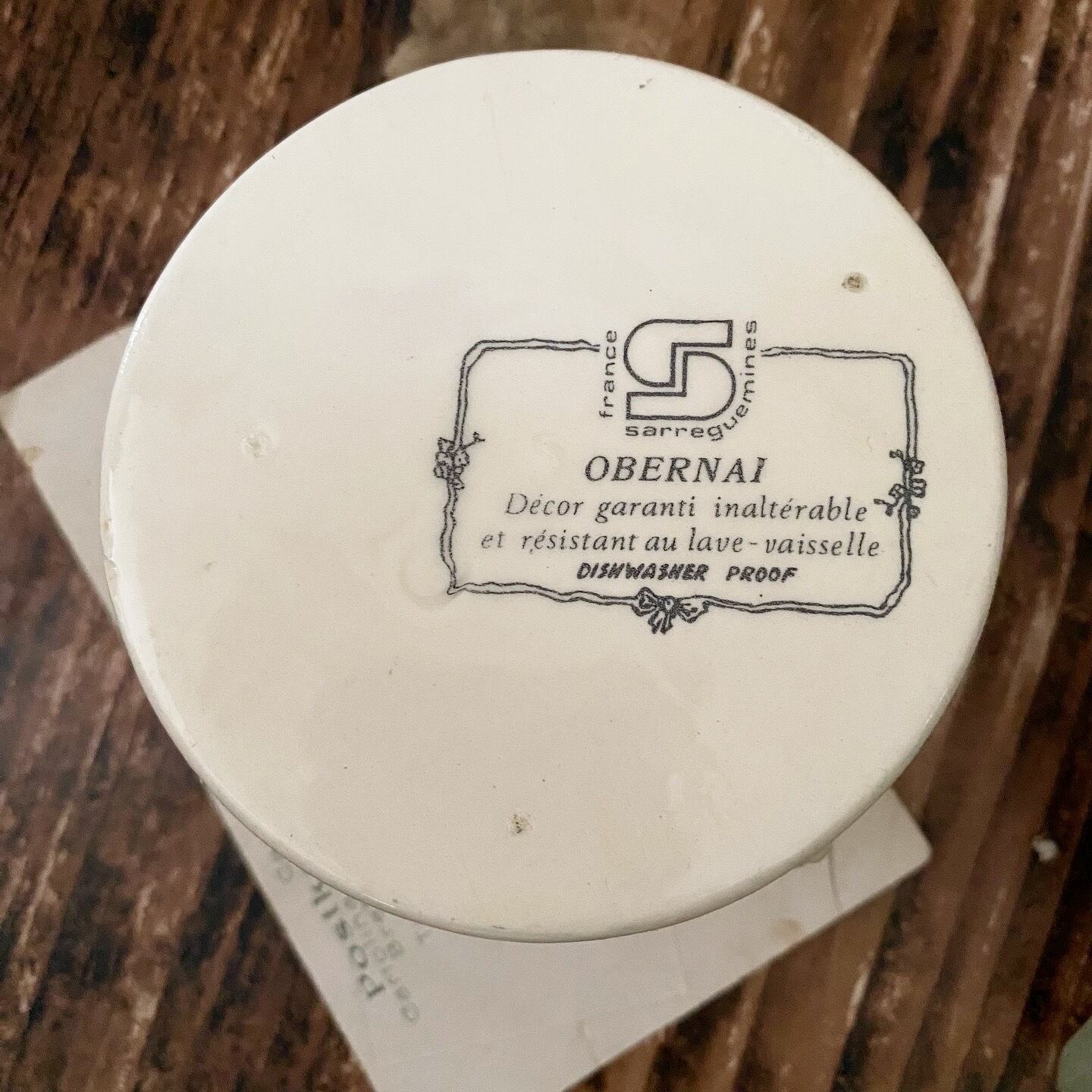 背面に「OBERNAI, Sarreguemines FRANCE」と刻印されています。